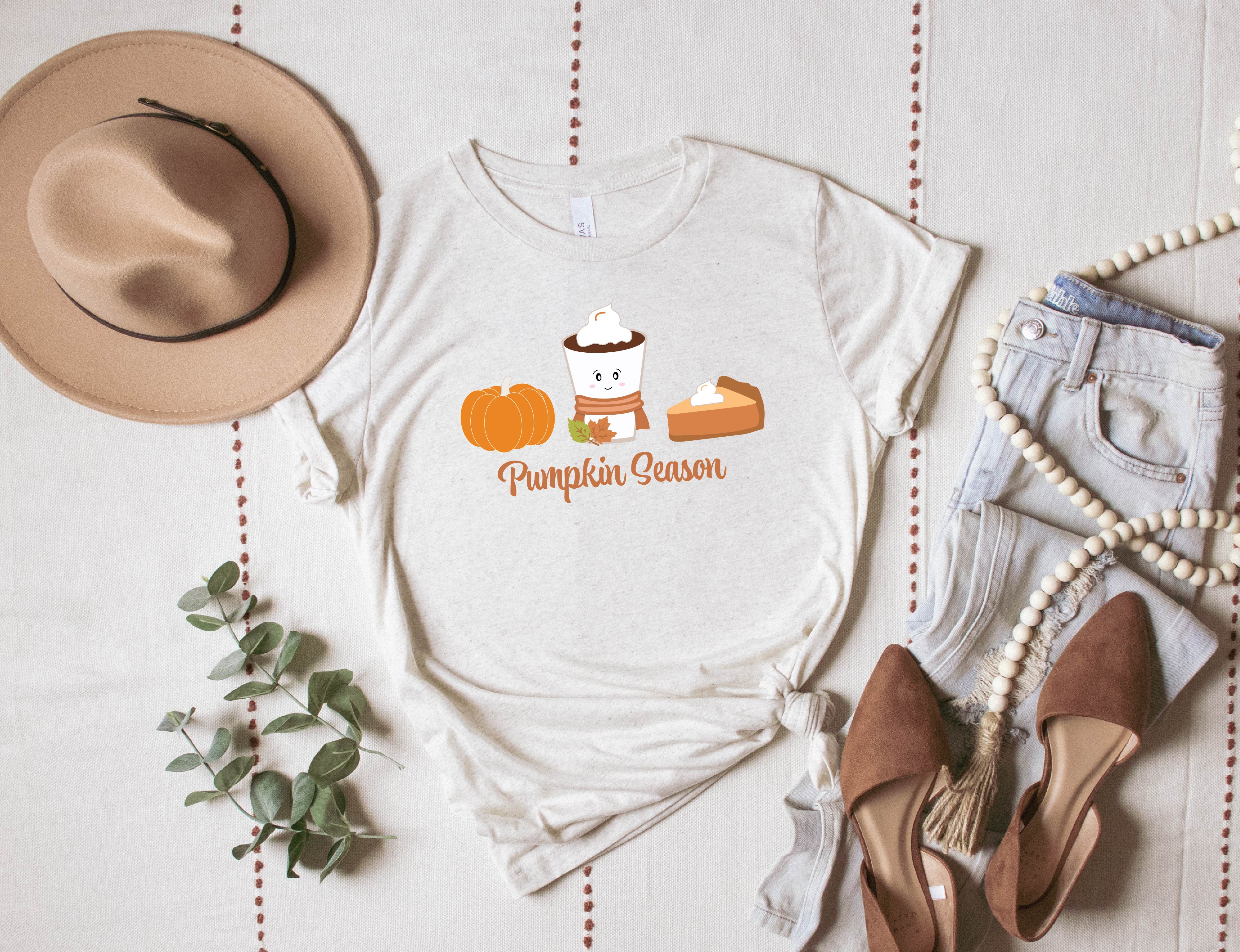 'Pumpkin Season' is here! Show off your love for fall with this cozy shirt. Featuring a hand-illustrated design on a cotton/poly blend. This will become a staple for your fall wardrobe!